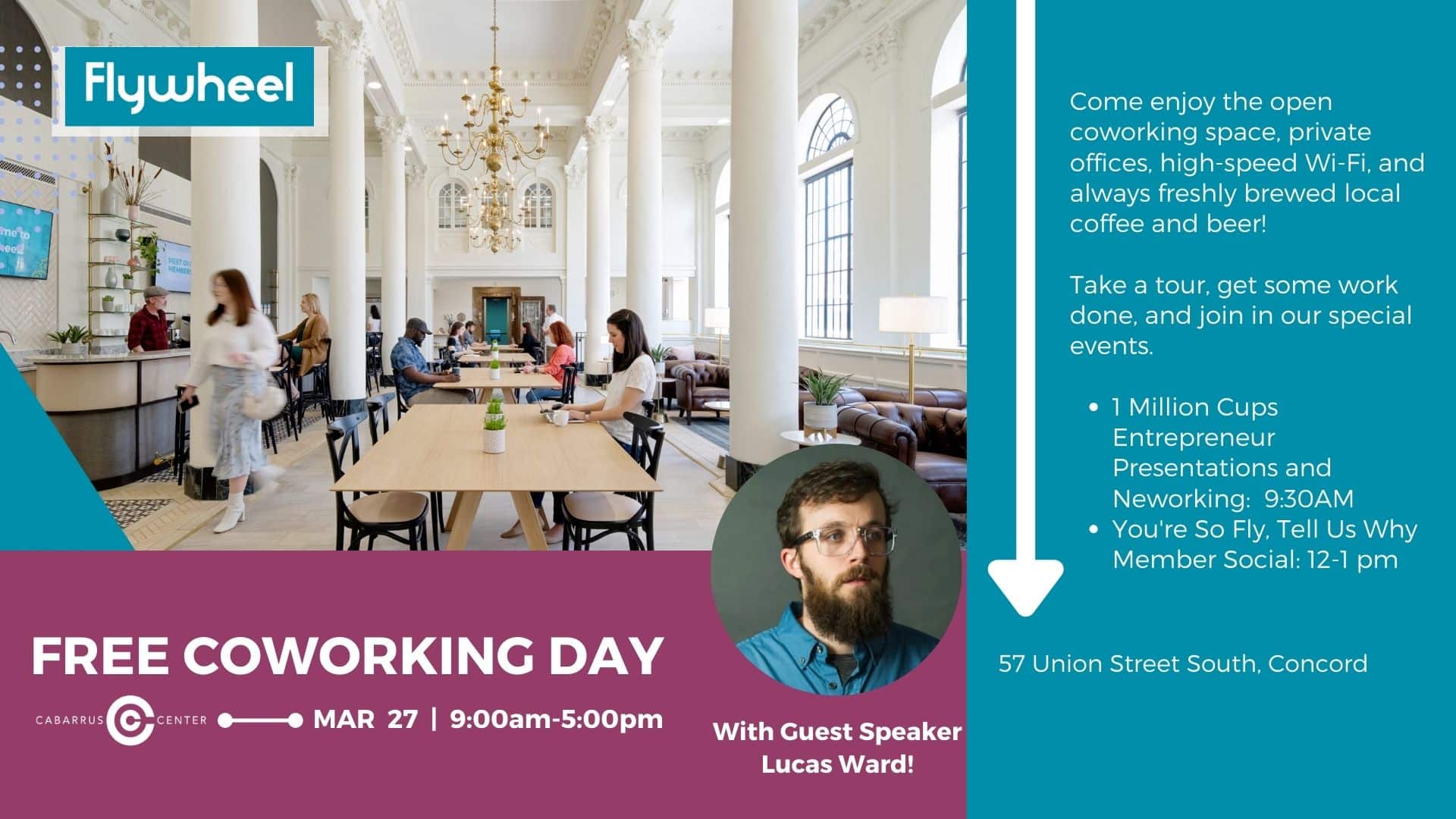 We invite you to join us for a Community Day here at Flywheel Concord! Free coworking and while you’re here, enjoy our You’re So Fly member lunch. It’s a day to see how Flywheel coworking can help you be more productive in your work, more connected in your community and accelerate your business.