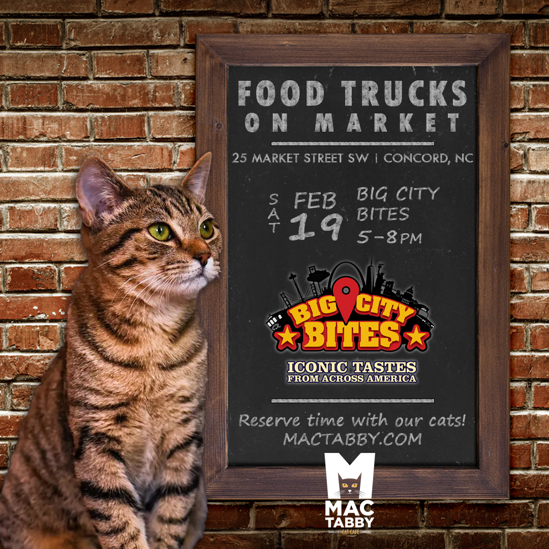 Bringing iconic tastes from across America back to Downtown Concord with ‘Big City Bites’ at Mac Tabby on 2/19! Hang out on our front porch with some good food, cold beverages and coffee from our café! Want to see the cats? We suggest reserving your spot in the cat lounge in advance at MacTabby.com. “Half Cats | Half Coffee | One Amazing Experience!”