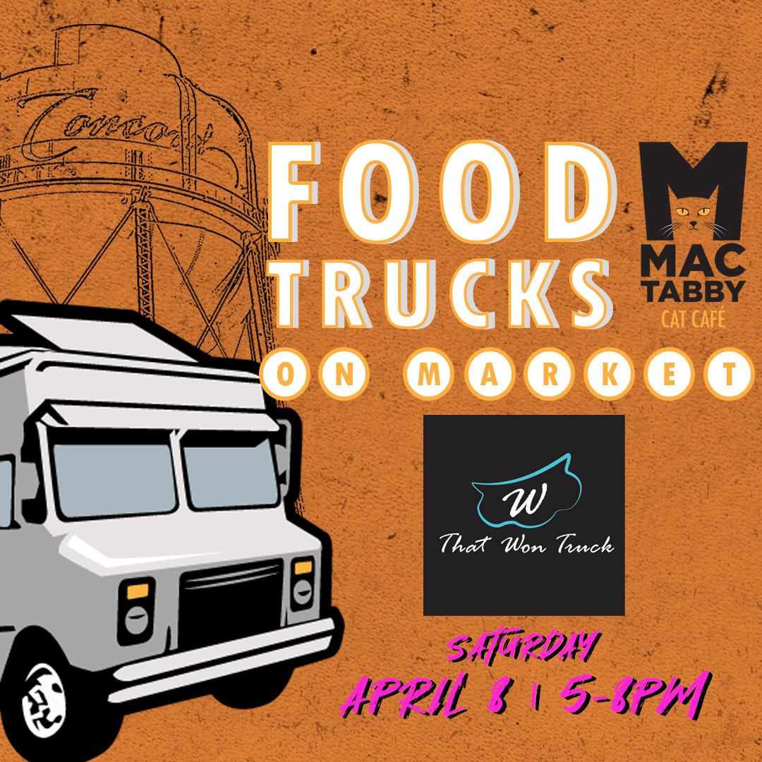 Enjoy Asian Food with a Southern Twist when That Won Truck visits Downtown Concord on Saturday, 4/8! Hang out on our front porch, grab some great food and a few cold beverages, as well as coffee and other drinks from our cafe! Want to see the cats? We suggest reserving your spot in the cat lounge in advance at MacTabby.com. “Half Cats | Half Coffee | One Amazing Experience!”