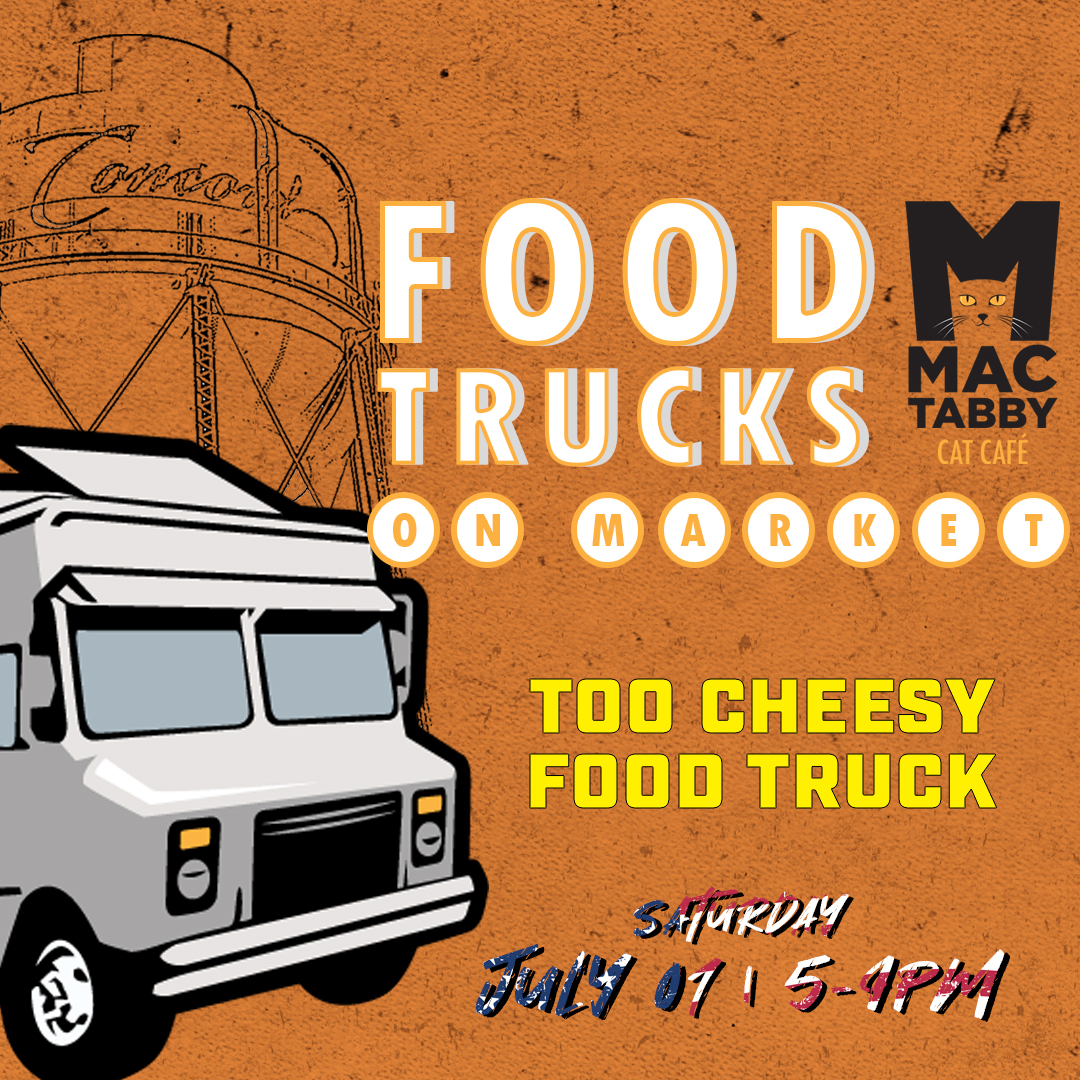 Enjoy mouth watering, gourmet grilled cheese sandwiches from Too Cheesy Food Truck at Mac Tabby Cat Cafe in Downtown Concord! Hang with the cool cats for dinner, cold beverages, and coffee from our cafe! Want to see the cats? We suggest reserving your spot in the cat lounge in advance at MacTabby.com. “Half Cats | Half Coffee | One Amazing Experience!”