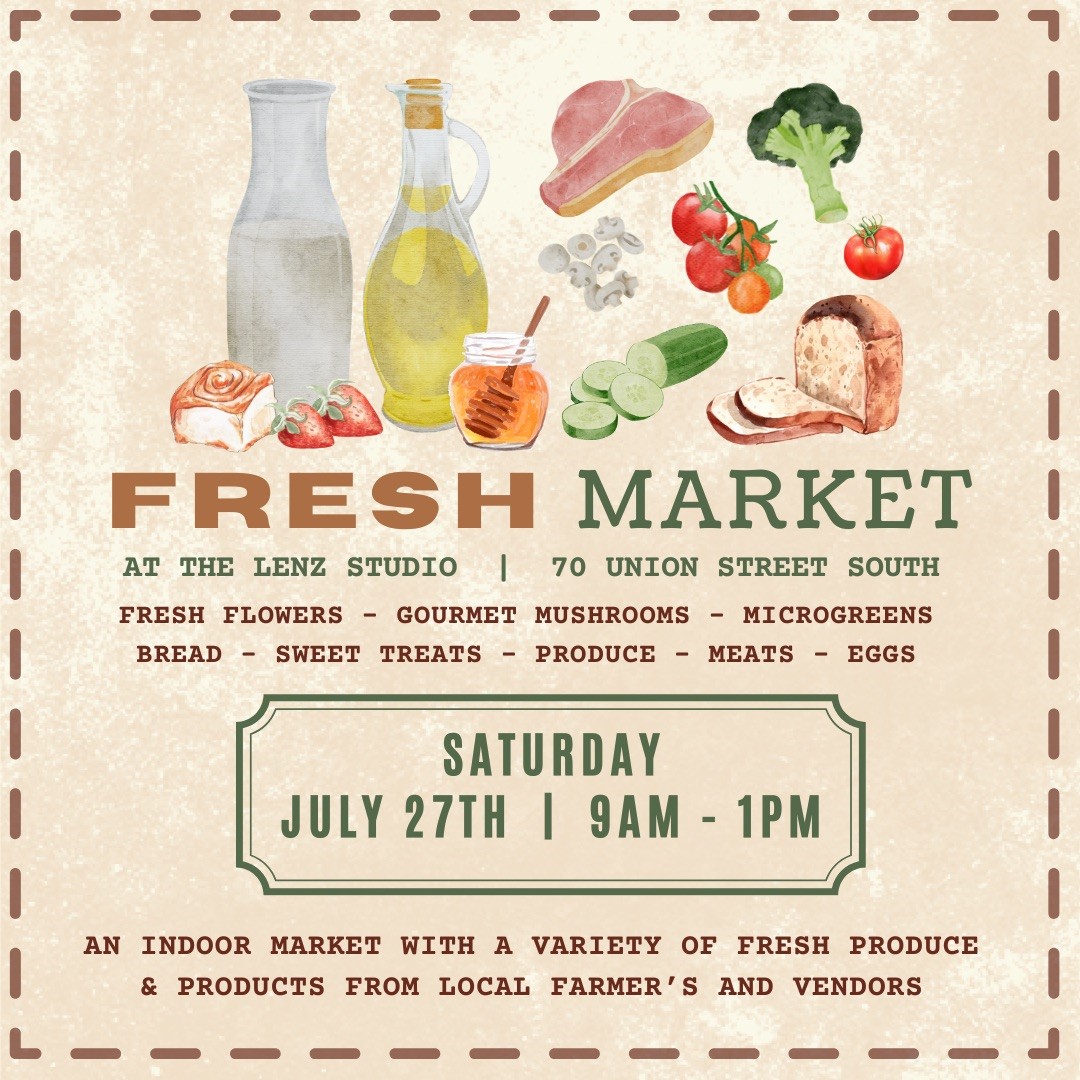 Join us for our Fresh Markets at The Lenz Studio on July 27th!