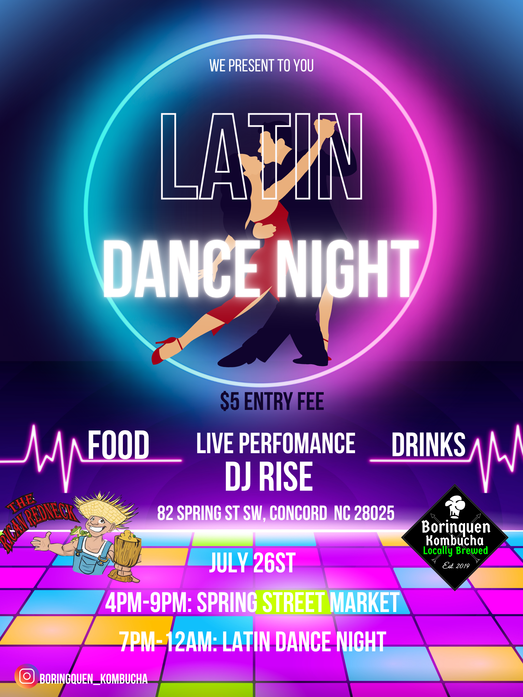 Latin Night Live DJ: DJ Rise Food & Drinks Food truck: thericanredneck + Add to Google Calendar + iCal / Outlook export Date Jul 26 - 27 2025 Expired! Time 7:00 pm - 12:05 am Cost $5.00 Location Borinquen Kombucha 82 Spring St SW Concord North Carolina Website https://www.instagram.com/borinquen_kombucha?igsh=bW5oaGprajRkeDZv&utm_source=qr Category Brewery Live Music Organizer Borinquen Kombucha Share this event