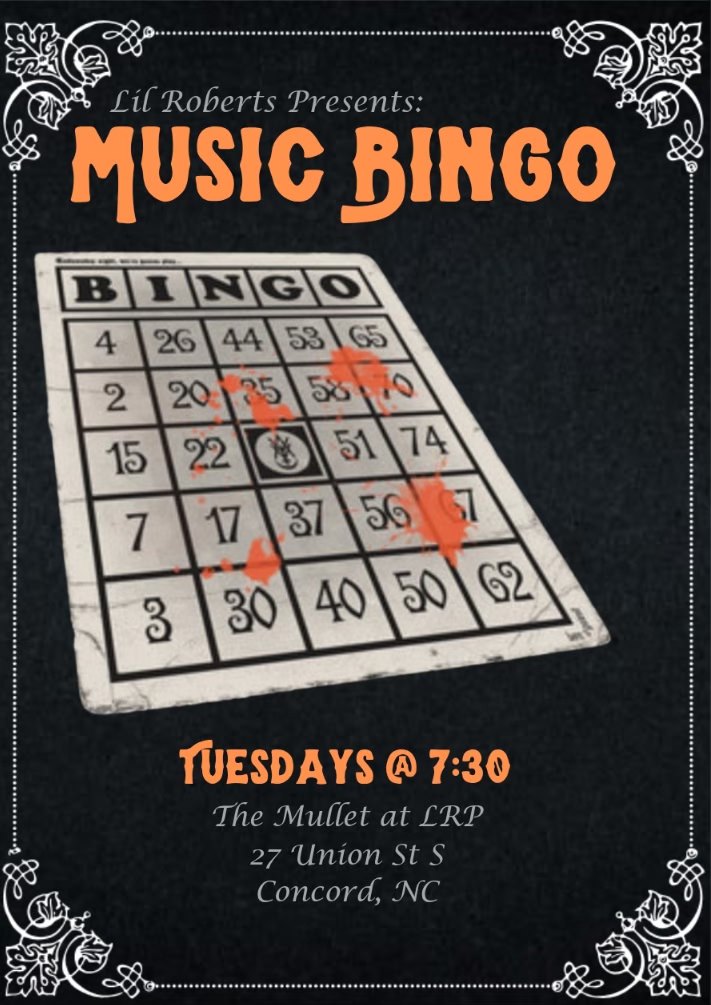 LRP is thrilled to announce in addition to trivia on Mondays, music bingo will be held on Tuesdays! Music bingo will be held inside of The Mullet, right next door to Lil Roberts Place. Beginning at 7:30pm every Tuesday night, themed rounds of bingo to some of our favorite genres of music. Each round is a different theme. Ending at about 9/9:30pm. Plenty of seating and cold beer (& N/A) will be available for your enjoyment. Come play some bingo and see if you know your tunes!