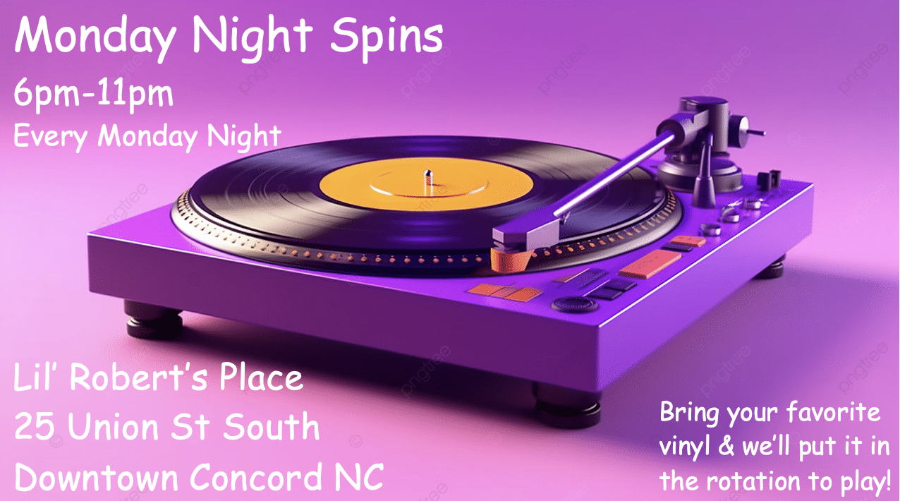 Monday Night is vinyl night at Lil Robert’s Place! Record night’s back! 6pm-11pm. Bring your own album in and we’ll play it on our own record player. Enjoy a cold craft beer while listening to some of your own favorites playing over our speakers. First come first serve, we’ll throw it in the rotation. Find our Facebook group “Monday Night Spins @ LRP” Open Mic is Wednesdays 7-10 as well.